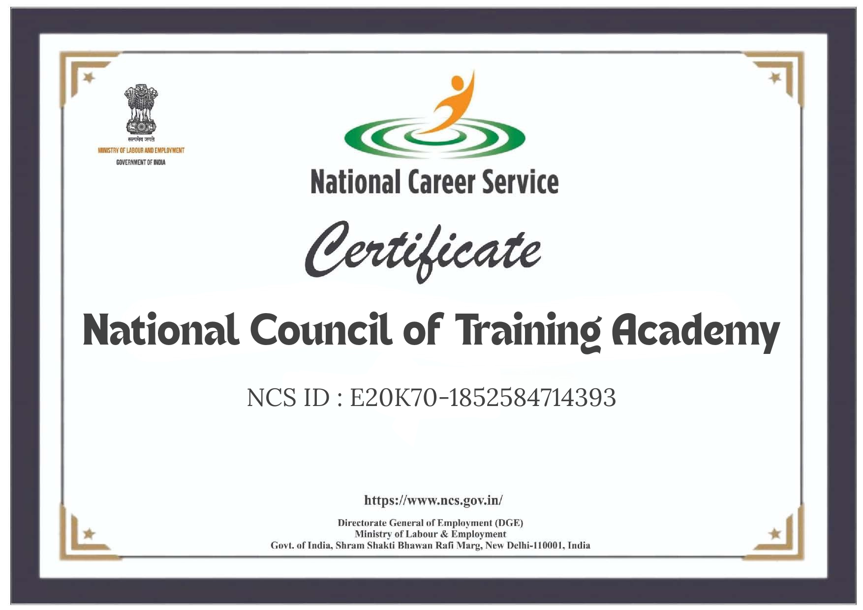 NATIONAL COUNCIL OF TRAINING ACADEMY MSME CERTIFICATE